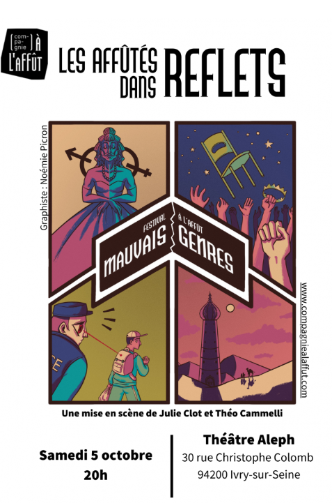 Créée en 2002, à l’initiative de Nour Jlassi, la Compagnie à l’Affût revendique son caractère social et solidaire et s’inscrit dans une démarche de démocratisation de l’accès à la culture et la pratique artistique dans les quartiers populaires de Paris. Elle tente, par le biais du spectacle vivant, de créer une dynamique génératrice de lien social, d’échange entre les habitant.e.s et de dialogue intergénérationnel.